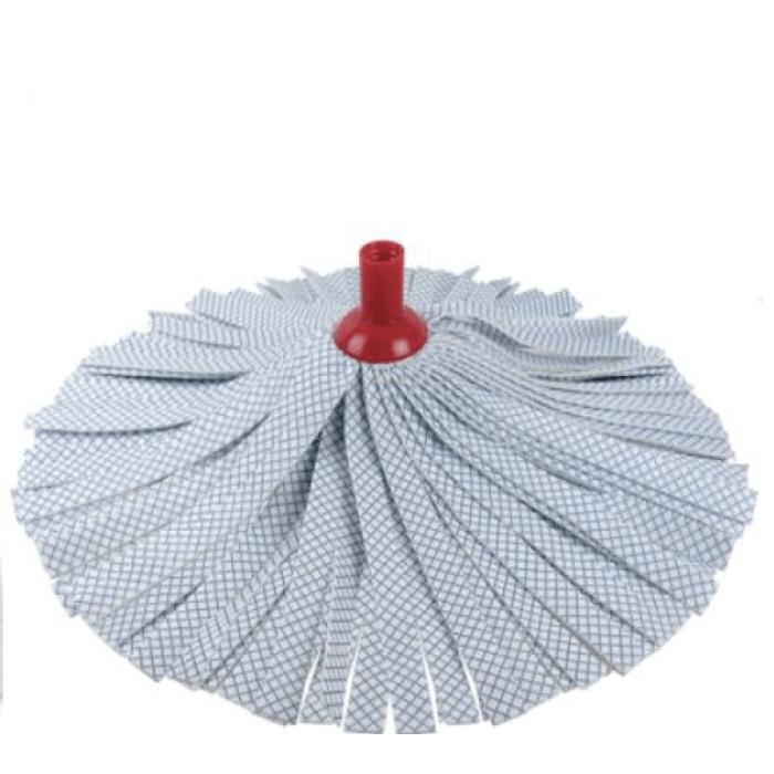 The Multy Aquablue Cloth Mop is easy to change. Simply twist off and dispose of the old dirty mop head and connect this refill by twisting on to the handle. A sturdy plastic connector helps ensure cleaning is fast and easy. The long, thick cloth strands are super absorbent for cleaning and drying floors quickly and with ease.