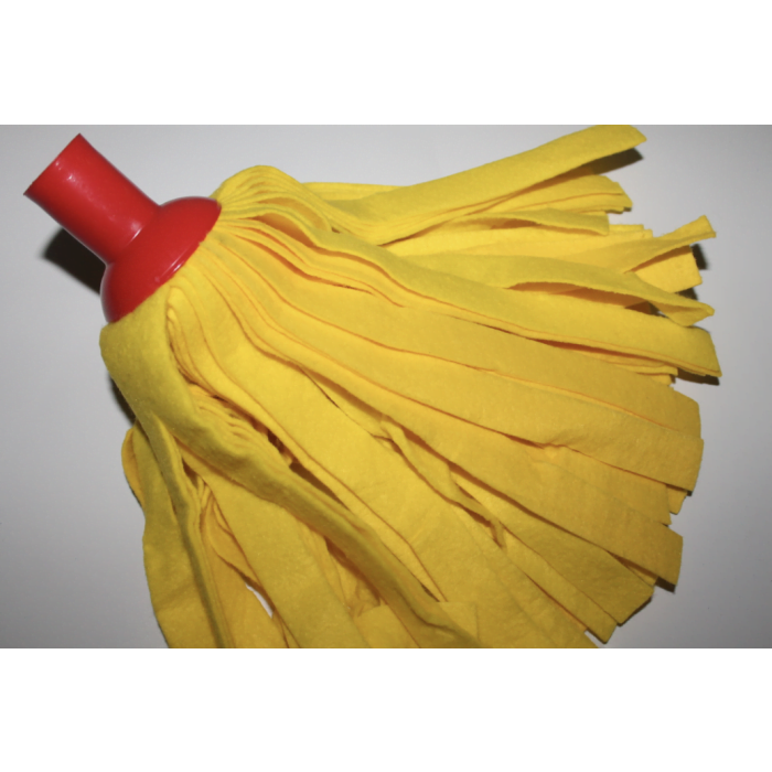 The Multy yellow Cloth Mop is easy to change. Simply twist off and dispose of the old dirty mop head and connect this refill by twisting on to the handle. A sturdy plastic connector helps ensure cleaning is fast and easy. The long, thick cloth strands are super absorbent for cleaning and drying floors quickly and with ease.