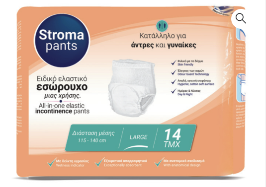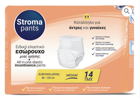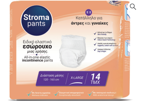 Stroma Pants adults disposable briefs provide discreet comfort and reliable protection against moderate and high incontinence for active men and women. The side barriers offer safe leakage protection exactly where it is needed. A breathable cloth – like outer fabric reduces the risk of irritation & keeps the skin dry. Odor Guard technology reduce odors.