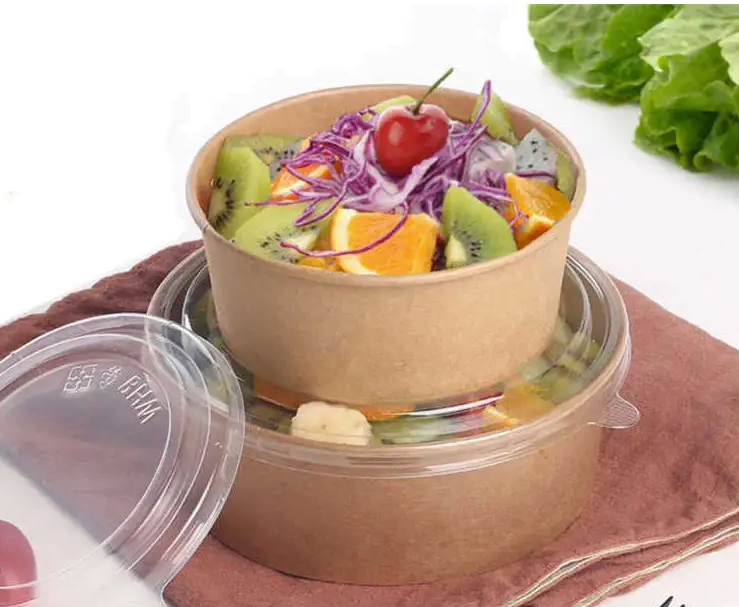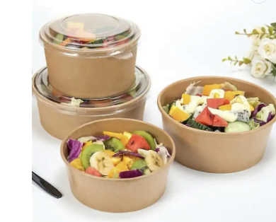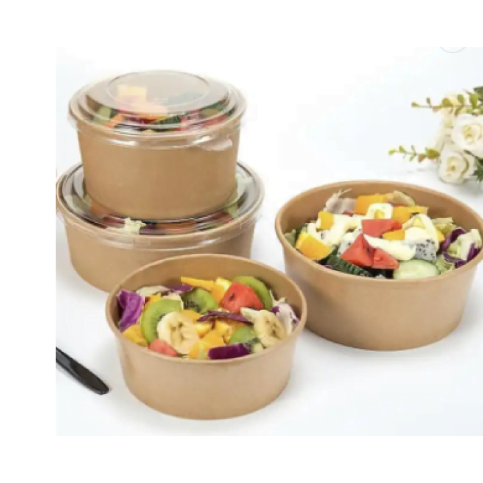 • Eco-friendly Disposable Kraft Paper Bowl Packaging Cup Take Away Salad Bowl with Lid