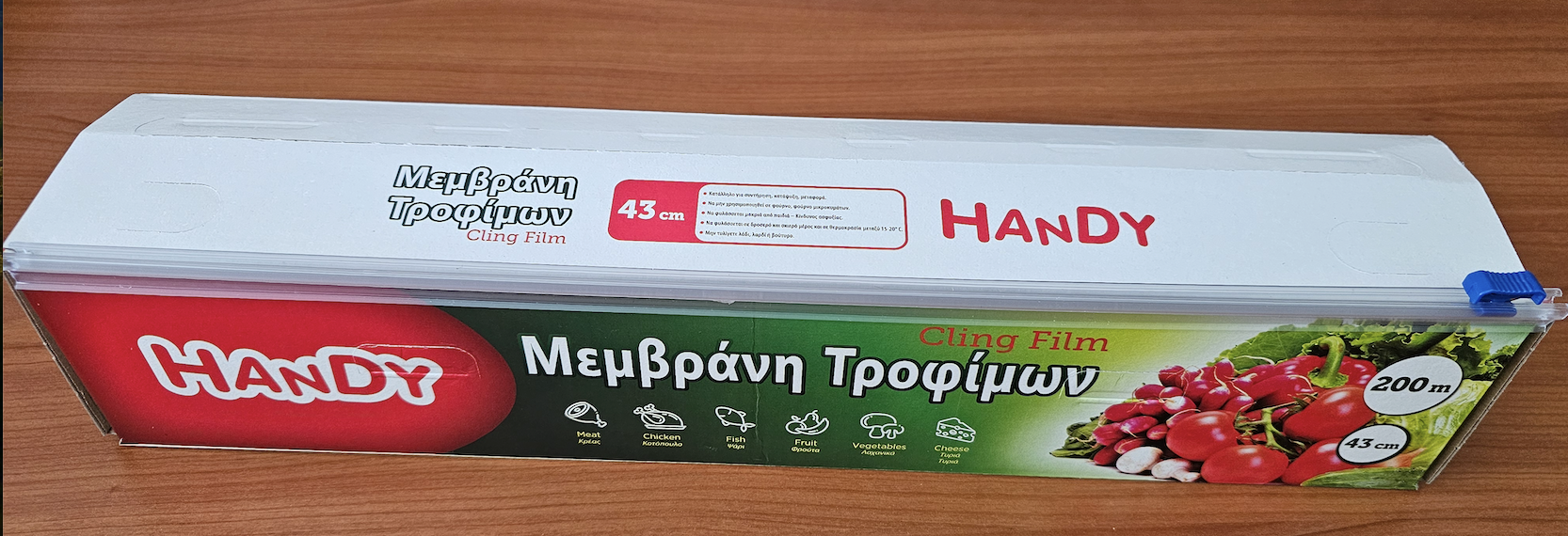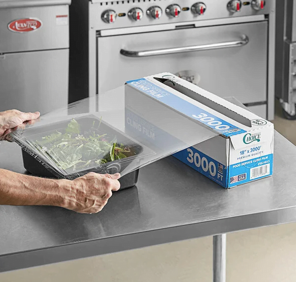 Transparent food wrap, for professional and household use. Suitable for food contact.