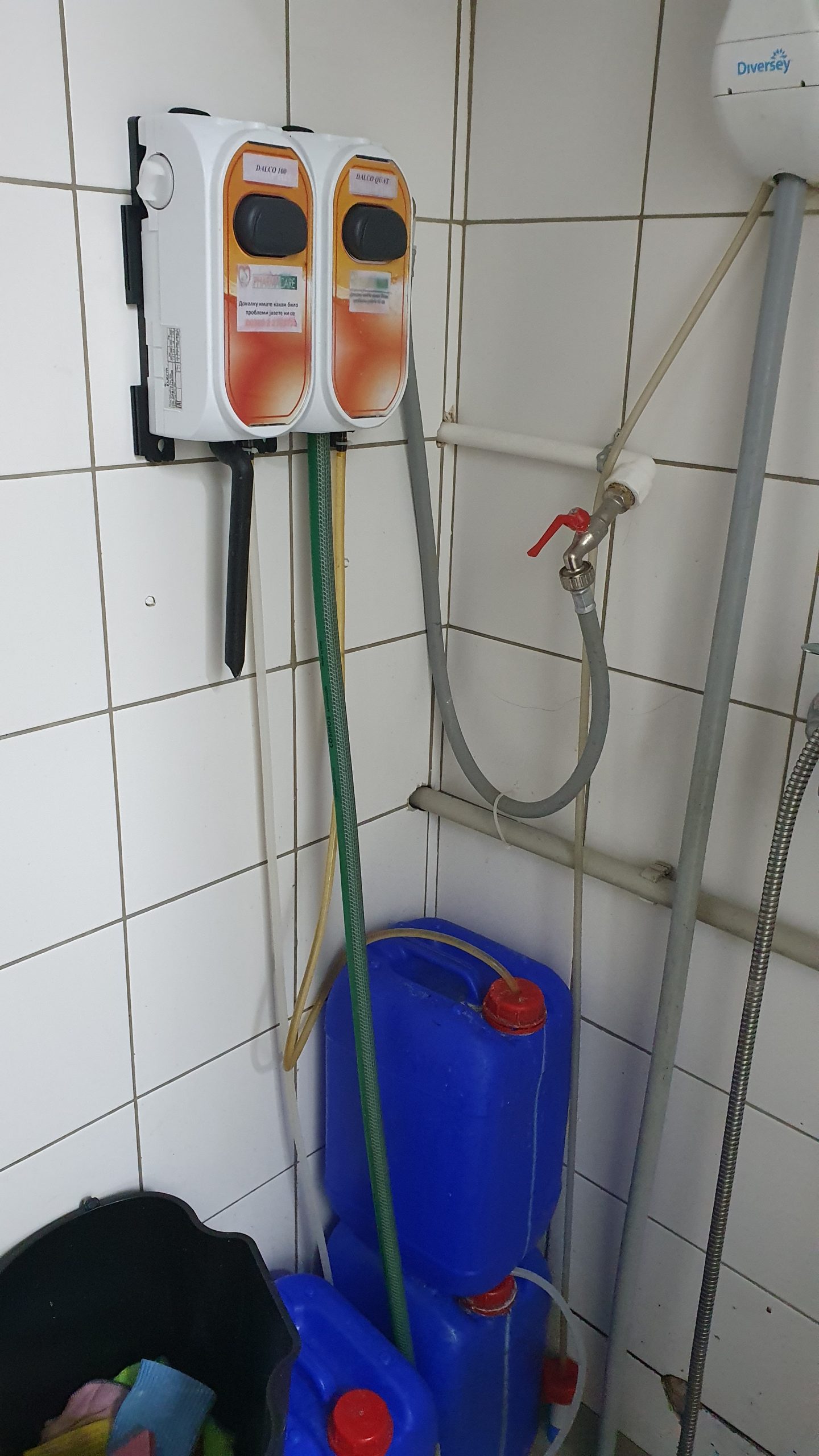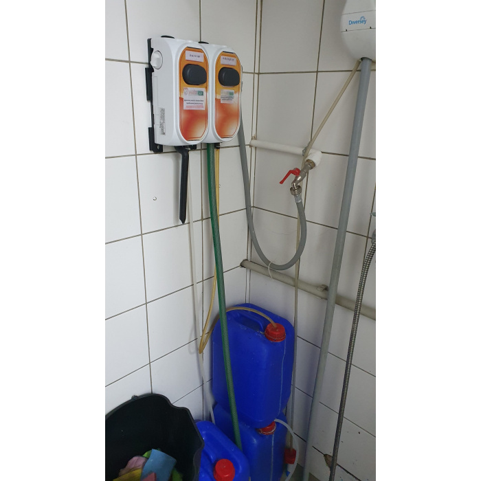Use 10ml – 40ml/10 Lt of water and increase by 15% depending on the degree of difficulty of the pollutants. Spread with a cloth or mop on the surface to be cleaned and let it work to dissolve the scale.It leaves no residue.