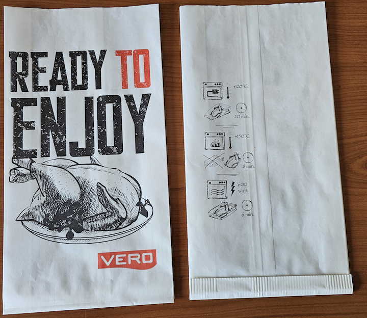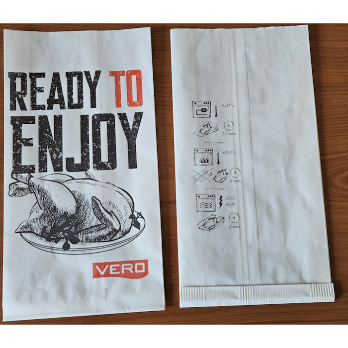 Paper bags PL for VERO Super Markets for ” Grill or Bake Chickens” 18cm +6cm x 34cm