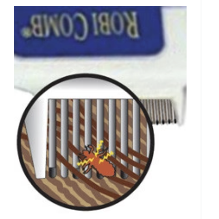 The RobiComb® is unlike any lice product on the market. It is an electric lice comb that uses MicroCharge technology to zap lice on contact with a low electric pulse that kills lice. It is designed to use on dry hair, anytime anywhere. Simply run the RobiComb through clean, dry hair and listen as you eliminate lice on contact.